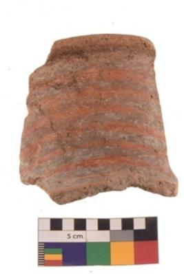 | Description / विवरण | Specimen of black on red ware with black decorative Horizontal lines geometric painting. |
