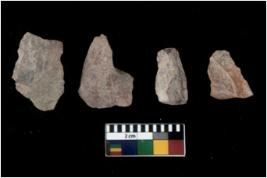 | Provenance / उद्गम/क्षेत्र | There are n 4 cores; there are multidirectional irregular scar pattern on them. Some of them are tapering at one end. Most of them having blunt edges. |