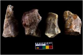 | Description / विवरण | There are n 04 objects; all are blunt, cut marks and retouched shapes is visible. Two are tapering at one end. |