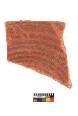 | Description / विवरण | Specimen of black on red ware with black decorative Concentric circles geometric painting. |
