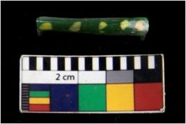 | Description / विवरण | Specimen of green bangle decorated with yellow dots circular cross section and smooth surface. |