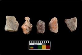 | Description / विवरण | There are n 5 Debitage ;Specimen of a cores with several broad fluted marks. The reverse bulb and platform can be seen |