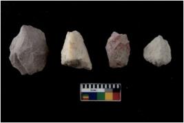 | Description / विवरण | There are n 4 flakes tool; there are large flakes with sides trimmed, Marks of secondary flaking are present on the both the faces.The dorsal is relatively flat. |