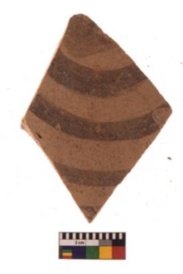 | Description / विवरण | Specimen of black on red ware with black decorative Concentric circles geometric painting. |