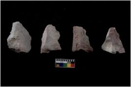 | Description / विवरण | There are n 4 flakes tool; there are large flakes with sides trimmed, Marks of secondary flaking are present on the both the faces.The dorsal is relatively flat. |