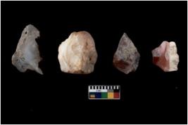 | Description / विवरण | There are n 4 Flake tool; There are multidirectional irregular scar pattern on them. few have blunt edges, Some of them are tapering at one end. |