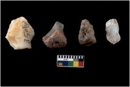 | Description / विवरण | There are n 4 Flake tool; There are multidirectional irregular scar pattern on them. few have blunt edges, Some of them are tapering at one end. |