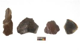 | Description / विवरण | There are n 4 flakes tool; there are large flakes with sides trimmed, Marks of secondary flaking are present on the both the faces.The dorsal is relatively flat. |