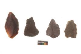 | Description / विवरण | There are n 4 flakes tool; there are large flakes with sides trimmed, Marks of secondary flaking are present on the both the faces.The dorsal is relatively flat. |