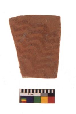 | Description / विवरण | Specimen of black on red ware with black decorative Wavy lines geometric painting. |