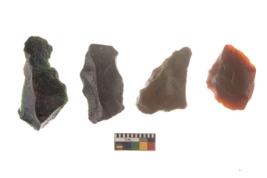 | Description / विवरण | There are n 4 flakes tool; there are flakes tool with prominent flaking marks. It made up of a large flakes with sides trimmed. |