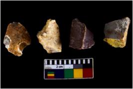 | Description / विवरण | There are n 04 objects; two are sharp from sides, they have single to double flake scars along their surface and two of them have parallel scars along the edges. . |