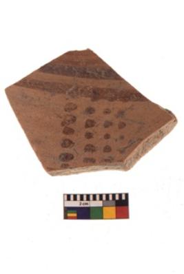 | Description / विवरण | Specimen of red on red ware with decorative Horizontal lines with small vertical dotted lines below geometric painting. |