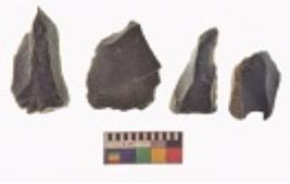 | Description / विवरण | There are n 4 utilized flake cores. There are multi directional irregular scar pattern on both dorsal and ventral face of the flake cores. Two have sharp edges and two have blunted edges. |
