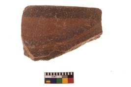 | Description / विवरण | Specimen of black on red ware with black decorative Joined curves geometric painting. |