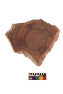 | Description / विवरण | Specimen of red on red ware with decorative Circle at the centre with attached circles geometric painting. |