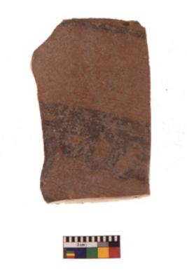 | Description / विवरण | Specimen of black on red ware with black decorative Horizontal lines geometric painting. |