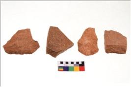 | Description / विवरण | Specimen of flakes tool with prominent flaking marks. It made up of a short flakes with sides trimmed. It is rectangular in shaped. |