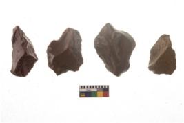 | Description / विवरण | There are n 4 Flake tool; There are multidirectional irregular scar pattern on them. few have blunt edges, Some of them are tapering at one end. |