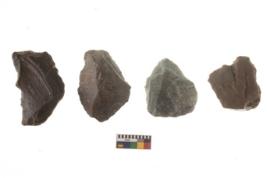 | Description / विवरण | There are n 4 Flake tool; There are multidirectional irregular scar pattern on them. few have blunt edges, Some of them are tapering at one end. |