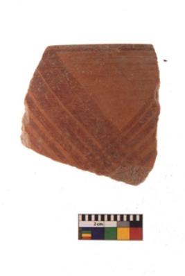 | Description / विवरण | Specimen of black on red ware with black decorative Intersecting lines geometric painting. |