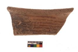 | Description / विवरण | Specimen of black on red ware with black decorative Horizontal lines geometric painting. |