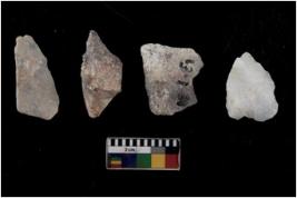 | Description / विवरण | There are n 4 Flake tool; There are multidirectional irregular scar pattern on them. few have blunt edges, Some of them are tapering at one end. |
