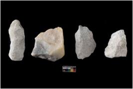 | Description / विवरण | There are n 4 flakes tool; there are flakes tool with prominent flaking marks. It made up of a large flakes with sides trimmed. |