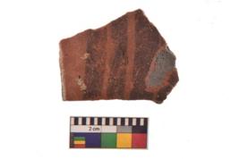 | Description / विवरण | Specimen of Potsherd black on red painted pottery. It is fine fabric in sharp contrast with painted design are executed in black pigment. |
