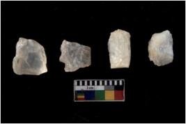 | Description / विवरण | There are n 4 flakes tool; there are flakes tool with prominent flaking marks. It made up of a large flakes with sides trimmed. |