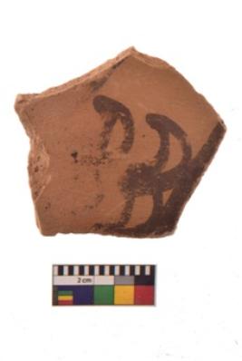 | Description / विवरण | Specimen of Potsherd black on red painted pottery. It is fine fabric in sharp contrast with painted design are executed in black pigment. |