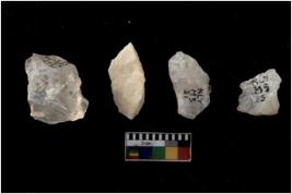 | Description / विवरण | There are n 4 Flake tool; There are multidirectional irregular scar pattern on them. few have blunt edges, Some of them are tapering at one end. |