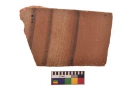 | Description / विवरण | Specimen of Potsherd black on red painted pottery. It is fine fabric in sharp contrast with painted design are executed in red pigment. |