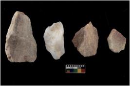 | Description / विवरण | There are n 4 flakes tool; there are flakes tool with prominent flaking marks. It made up of a large flakes with sides trimmed. |