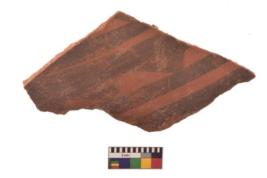 | Description / विवरण | Specimen of Potsherd with black decorative linear painting . |