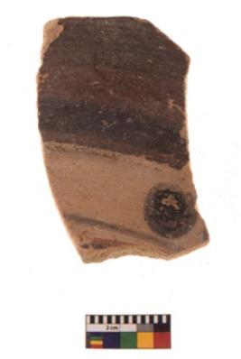 | Description / विवरण | Specimen of red ware with decorative Thick horizontal band with a circle below incisions. |
