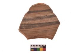 | Description / विवरण | Specimen of Potsherd black on red painted pottery. It is fine fabric in sharp contrast with painted design are executed in black pigment. |