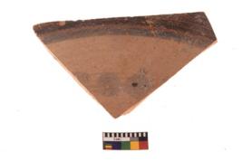| Description / विवरण | Specimen of black on red ware with black decorative Horizontal lines with row of dots below geometric painting. |