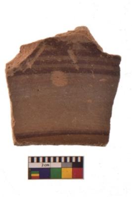 | Description / विवरण | Specimen of Potsherd black on red painted pottery. It is fine fabric in sharp contrast with painted design are executed in red pigment. |