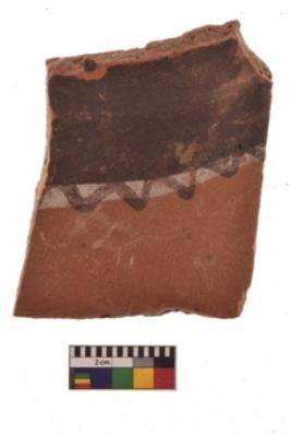 | Description / विवरण | Specimen of Potsherd black on red painted pottery. |