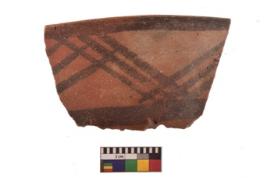 | Description / विवरण | Specimen of Potsherd with black decorative linear painting . |