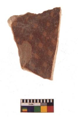 | Description / विवरण | Specimen of black on red ware with black decorative Lattice pattern geometric painting. |