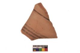 | Description / विवरण | Specimen of Potsherd with black decorative linear painting . |