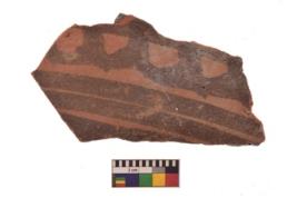 | Description / विवरण | Specimen of Potsherd black on red painted pottery. It is fine fabric in sharp contrast with painted design are executed in black pigment. |