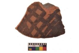 | Description / विवरण | Specimen of potter tool with black decorative geometric Net Pattern painting . |