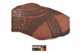 | Description / विवरण | Specimen of potter tool with black decorative geometric Net Pattern painting . |
