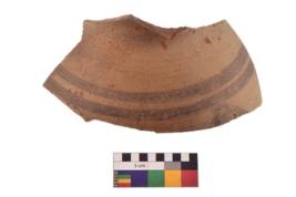 | Description / विवरण | Specimen of Potsherd black on red painted pottery. It is fine fabric in sharp contrast with painted design are executed in black pigment. |