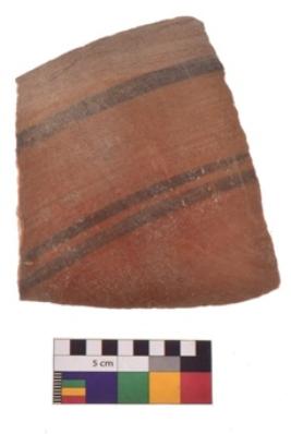 | Description / विवरण | Specimen of Potsherd black on red painted pottery. It is fine fabric in sharp contrast with painted design are executed in black pigment. |