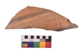 | Description / विवरण | Specimen of Potsherd black on red painted pottery. It is fine fabric in sharp contrast with painted design are executed in black pigment. |