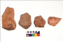 | Description / विवरण | There are n 4 flakes; there are multidirectional irregular scar pattern on them; made of short flakes, all four have blunted edges. |
